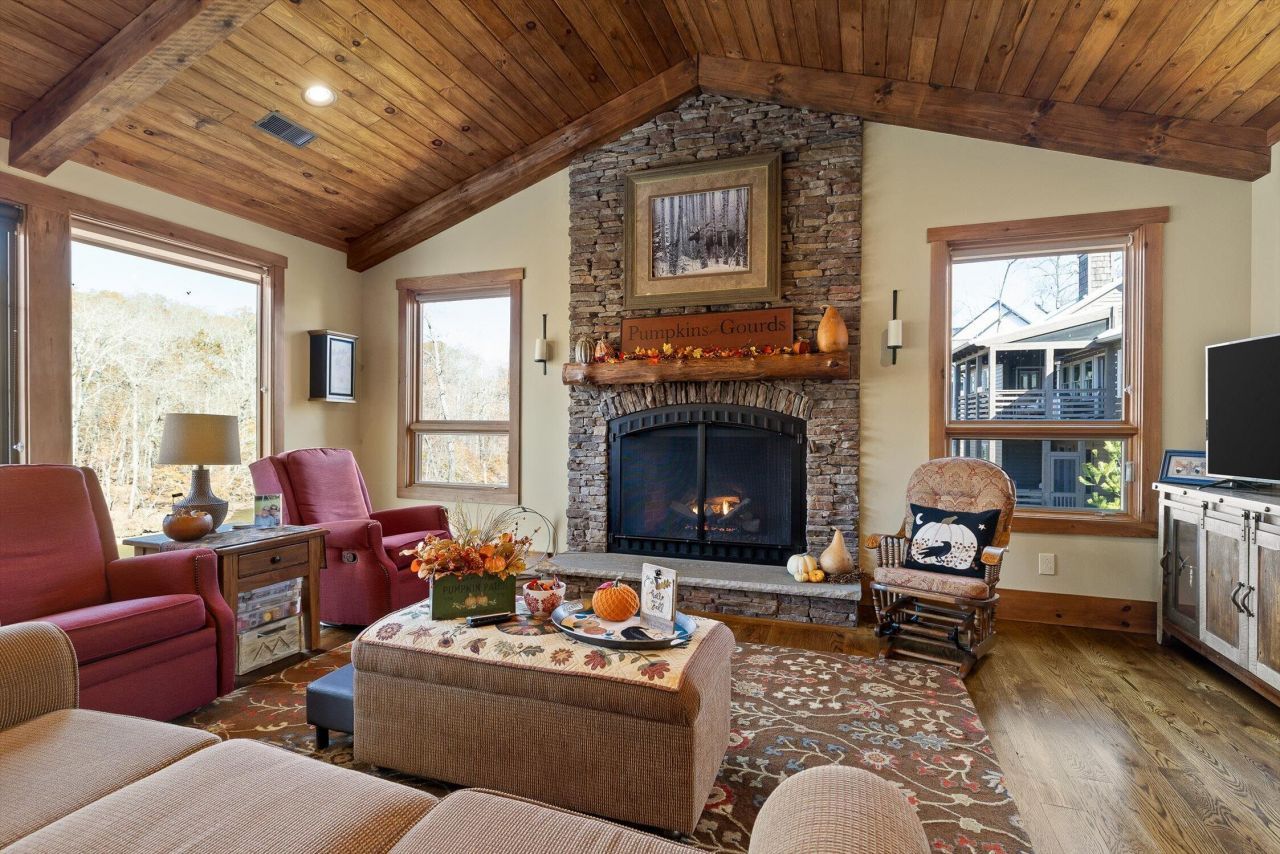 Lake living at its finest! Discover exceptional lakeside living in this custom-built home on Watts Bar Lake, located in the gated community of Lakeside Coves. Thoughtfully designed and meticulously crafted, this 3-bedroom, 3-bathroom retreat offers the perfect blend of luxury, comfort, and natural beauty. Step inside to an impressive open floor plan highlighted by stunning tongue-and-groove vaulted ceilings and expansive windows that frame gorgeous lake views. Warm by the fireplace or enjoy the screened room for outdoor living.The primary suite is located on the main level, offering a en suite bath with heated floors and a custom built closet for exceptional storage. The spacious walk-in pantry enhances the gourmet kitchen's functionality, while a finished room off the garage provides the ideal space for an office, craft room, workout area, or whatever you desire. The finished basement extends the living space with two additional bedrooms, two full bathrooms, a cozy built-in bunk area, and an office?perfect for hosting guests or creating a separate getaway zone. The expansive den in the basement lends the perfect space for lounging while taking in the water views. Outdoor living shines here with your own double-slip boat dock on year-round water, making lake days effortless and unforgettable. The salt water pool overlooks the lake with plenty of space for relaxing. Every detail of this home has been custom crafted, offering a unique and timeless lakeside sanctuary. Tucked away in the cove, you get year round water and a more private setting. Lakeside Coves features a club house with a gym and gated entrance. Don't hesitate to see this beautiful home and be in it in time for the boating season to start.