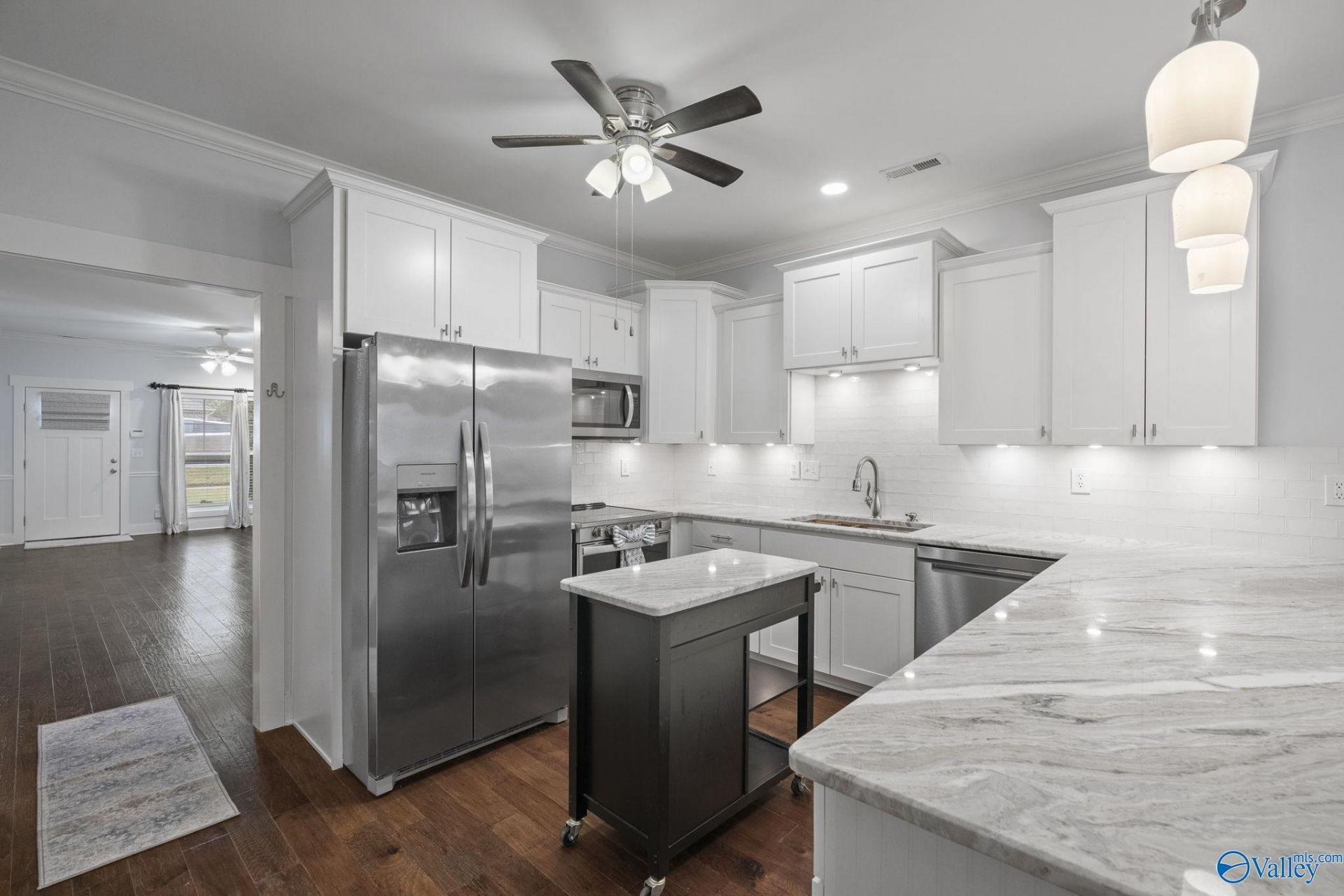 Welcome to carefree living! This beautifully maintained 3-bedroom, 3-bath townhouse offers an open layout perfect for entertaining or relaxing. Enjoy 9-foot ceilings, fresh paint, remote controlled blinds, new granite countertops, wood floors and crown molding throughout. The family room with electric fireplace flows seamlessly into the dining area and breakfast nook, overlooking your private courtyard with covered breezeway and awning for those sunny/rainy days. The main-level primary suite features an ensuite bath and walk-in closet, while the upstairs bedroom offers an ideal guest retreat. Two-car garage and close to Jones Valley, Hampton Cove shopping, dining, and downtown Huntsville!