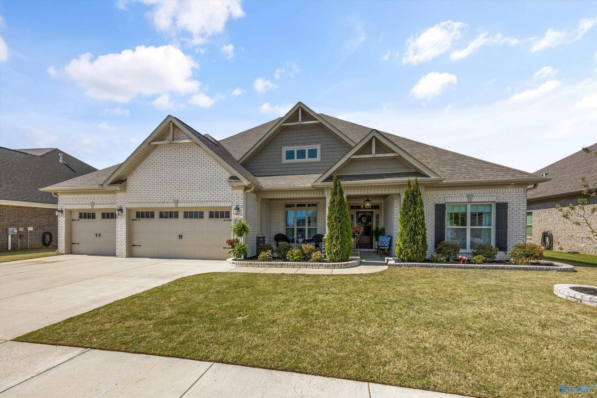 BEAUTIFUL! NEAR WALKING TRAILS! MOUNTAIN VIEWS, a 3-car garage, a location you can't beat, and an awesome floorplan?welcome to Flint Crossing! Stunning full-brick home near a top-rated elementary school! Enjoy walking trails and the perfect blend of style, space, and function. Open-concept layout features rich hardwoods, designer lighting, and a gorgeous chef's kitchen with large island, gas cooktop, and amazing cabinetry. Bright, beautiful glamor bath and tons of storage throughout. Spacious living area with fireplace flows to a covered patio and large, flat, privacy-fenced backyard. Main-level living + bonus with custom built ins and guest room/bath upstairs. Move-in read
