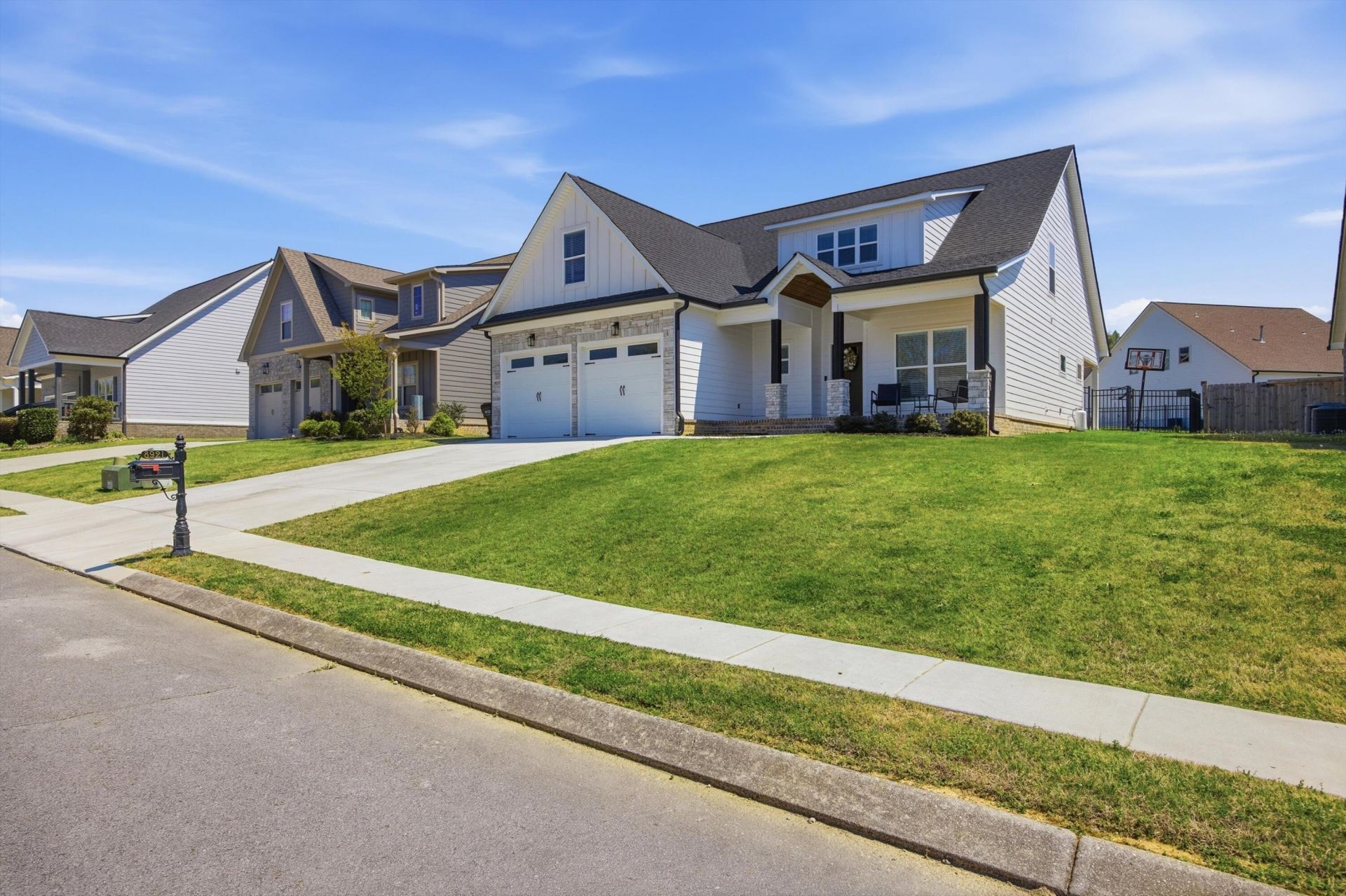 Welcome to this beautiful 4 bedroom, 3.5 bath home nestled in one of Ooltewah's most desirable gated communities, surrounded by breathtaking mountain views. This charming neighborhood offers exceptional amenities including a plantation-style clubhouse, Olympic-size swimming pool, playground, and tennis and pickleball courts, creating a wonderful setting for both relaxation and recreation. From the moment you arrive, you'll appreciate the inviting front porch and lovely curb appeal. Inside, the home features a bright and airy open floor plan with soaring ceilings that create a warm and welcoming atmosphere. The spacious great room showcases a stunning coffered ceiling and a beautiful stone gas fireplace, making it the perfect place to gather with family and friends. The gourmet kitchen is thoughtfully designed with custom cabinetry, elegant quartz countertops, stainless appliances and a large center island with bar seating and sink adding both style and functionality. The kitchen flows seamlessly into a generous dining area, making entertaining easy and enjoyable. The main level features two bedrooms, including the luxurious primary suite with a trey ceiling and spa-like bath. The primary bathroom offers dual vanity, a large soaking tub, a walk-in shower with seamless glass enclosure, a private water closet, and a spacious walk-in closet. A guest bedroom, full bathroom and a large laundry room with built-in shelving are also conveniently located on the main level. Upstairs, leads to additional living space, including two large bedrooms with ample walk-in closets, a full bathroom with connecting half bath, and an oversized bonus room that can serve as a 5th bedroom, media room, or home office. Additional features throughout the home include luxury vinyl hardwood-style flooring, high ceilings, some freshly painted rooms, nice light fixtures & quality insulated windows. The fenced backyard adds privacy and outdoor enjoyment. This gated community provides both security and beauty, featuring underground utilities and elegant cast-iron matching mailboxes throughout the neighborhood. The location is truly exceptional, just minutes from Cambridge Square, Ooltewah's vibrant gathering place known for fine dining, boutique shopping, concerts, and seasonal festivals. The home is also conveniently located near healthcare facilities, grocery stores, pharmacies, golf courses, assisted living communities, and Southern Adventist University. Travel is easy with Chattanooga Metropolitan Airport less than 20 minutes away, along with nearby marinas and beautiful state parks for outdoor recreation. This exceptional property offers the perfect combination of luxury, comfort, and convenience in one of Ooltewah's most sought-after communities.